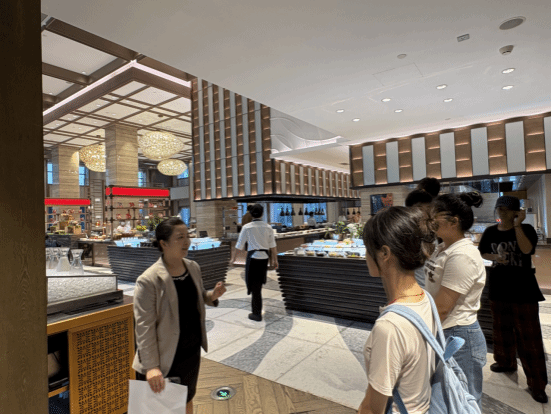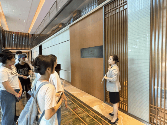 在酒店工作人员的引导下,师生们依次参观了客房、餐饮、会议及休闲等核心功能区,对酒店的日常运营与管理有了直观的认识。
